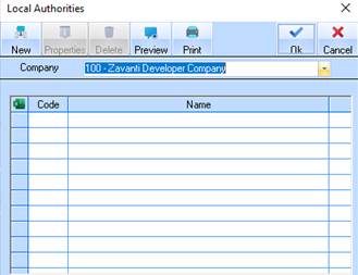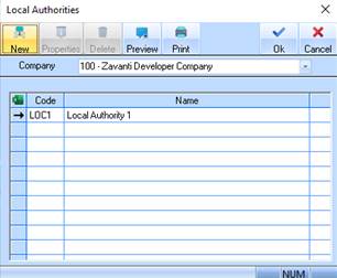 1. Select a menu path of Maintenance Ø Local Authorities.