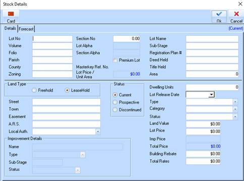2. Select the New button. The following window will be displayed: See Stock Details for explanation of each field.