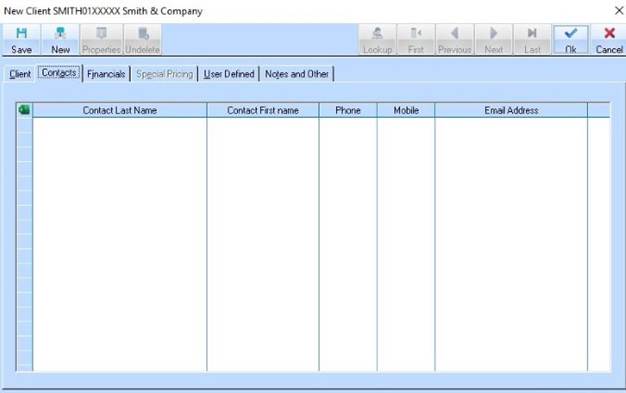 5. To create a new contact for the Debtor, select the New button. The following dialogue box will be displayed.