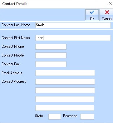 6. Specify the details of the Contact and press the OK button. The updated Contact dialogue box will be displayed as follows: