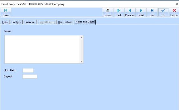 21. The User Defined window is used to nominate specific conditions attached to the Debtor. This coding system has been designed to allow you to design and extend the content of the data held in the database. Select the Notes and Other tab. The following window will be displayed: