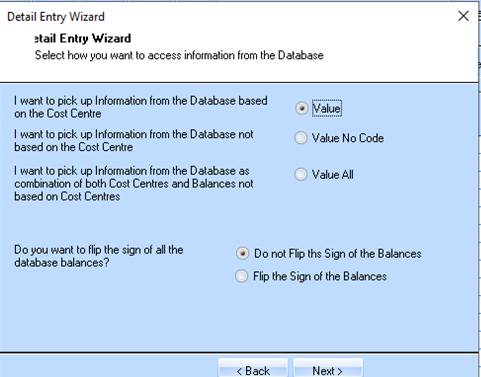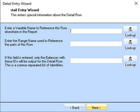 46. Leave the If this field is entered, only the Balances with these ID’s will be output to this Detail Row. This is a comma separated list of identifiers blank and press the Next button. The following window will be displayed: