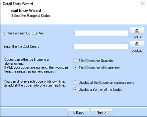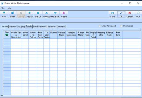 22. To create the Details line items, select the Wizard button. The following window will be displayed: