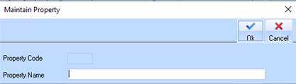 2. To create a new Property code, select the New button. The following dialogue box will be displayed: