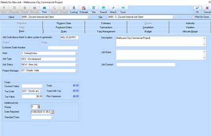 Please note: it is advised that you use meaningful JOB CODE codes to make it easier to recognise the project you are working in.