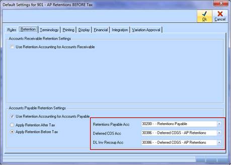 Use Retention Accounting for Accounts Payable (tick box) |