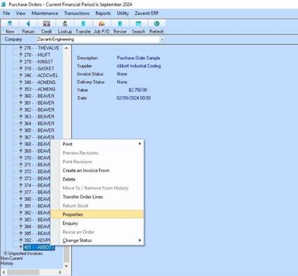1. Right click on the order and select ‘Properties’