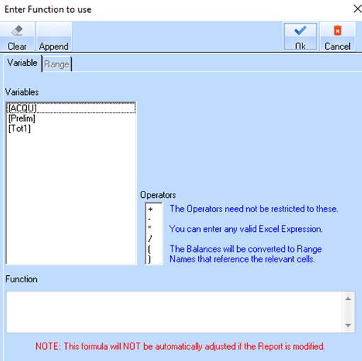 Power Writer utilizes Excels vast mathematical capability by allowing you to use formulas, and any valid Excel function in the Details area.