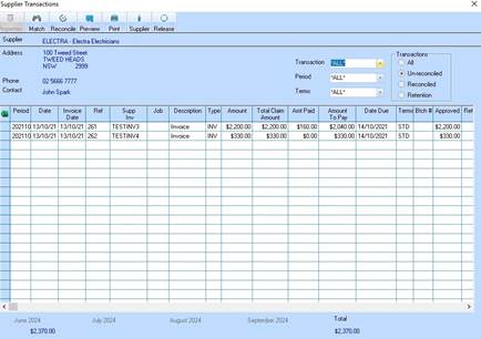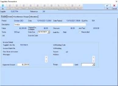 The Enquiry function allows a user to display all transactions for a Supplier.
