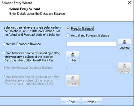 2. Position your cursor in the Balance field and press the Wizard button. The following window will be displayed: