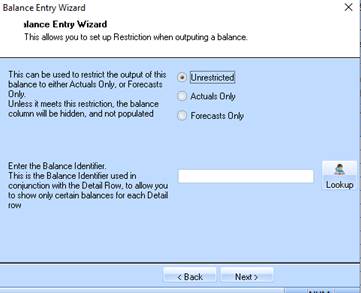 19. Leave the Enter the Balance Identifier field blank and press the Next button. The following window will be displayed: