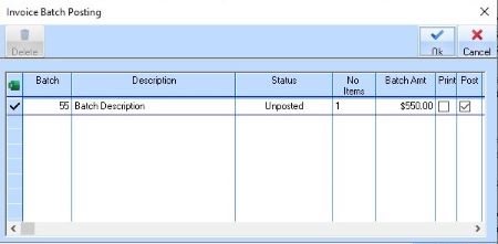 If you elect to create your invoices in Batch mode, you will need to manually post the transaction using this function.