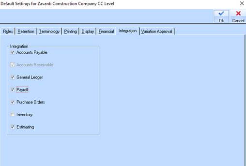 1. Ensure that the Payroll Integration has been checked in the Job Costing Defaults (this must be done for each company using payroll)