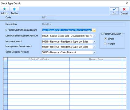 Note: Cost of Sales Land Area account can be set to different accounts if required, and by setting the % on the Estate, combined with/without Land Area values, the client can set required cost of sales calculation of sale.