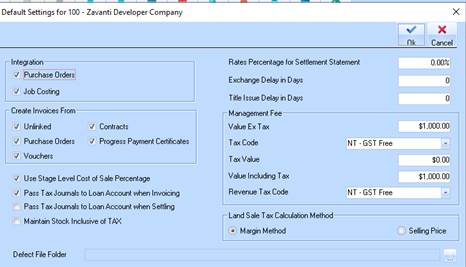 7. Fee Debit Account set up on the estate maintenance window also and a credit to the credit account. In reality the Credit account would be a sales account and the debit account would be a loan to the company in which the estate which contains the land resides.