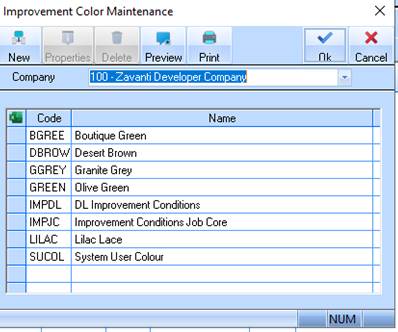 3. Select a menu path of Maintenance Ø Stock Ø Improvement Additions Ø Colour.