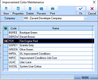 7. Enter a name for the Colour into the Description field. Press the OK button. The refreshed Colour Maintenance window will be displayed as follows: