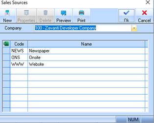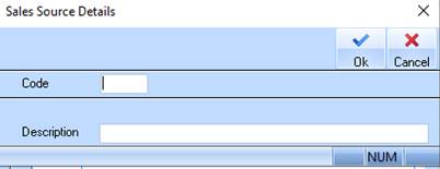 3. To create a new Sales Source, select the New button. The following dialogue box will be displayed: