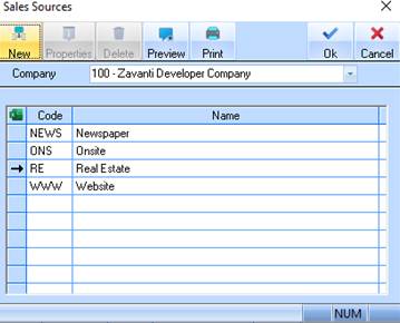 6. The refreshed Sales Source listing window will be displayed as follows: