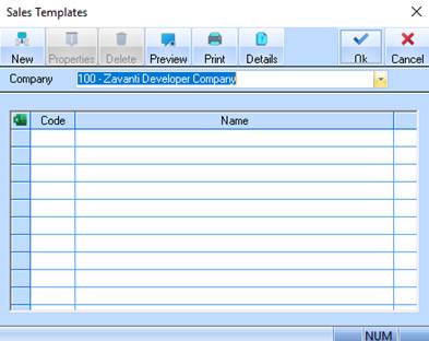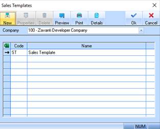 5. Enter a name for the Sales Template into the Description field. Press the OK button. The refreshed Sales Templates window will be displayed as follows: