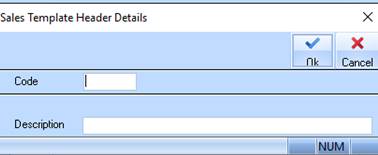 3. To create a new sales template, select the New button. The following dialogue box will be displayed:
