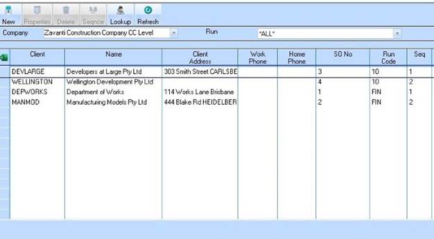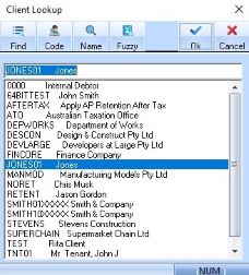 3. Select a client from the list and press the OK button. The following window will be displayed: