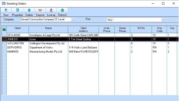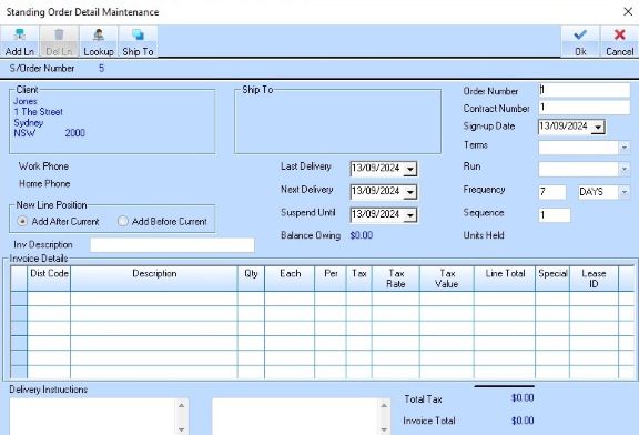 11. Press the OK button. The refreshed Standing Order window will be displayed as follows: