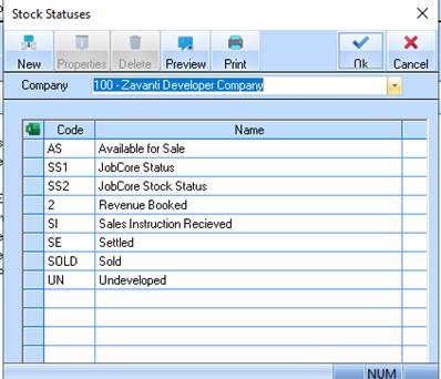 Stock Statuses have a crucial role to play in the production of reports. It is therefore important that you set up stock statuses that reflect both your stock production processes and your stock marketing processes. Some typical stock statuses may be AVAILABLE FOR SALE, RESERVED etc.