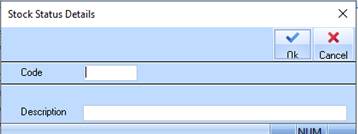 5. Enter text to describe the Stock Status and press the OK button.