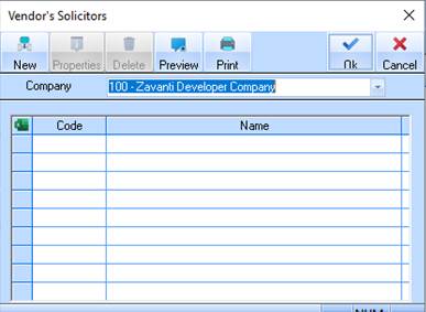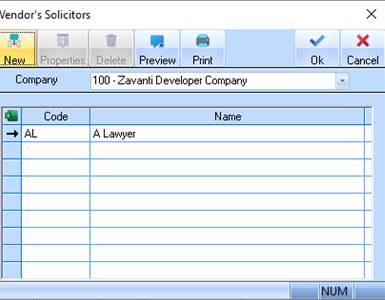 15. Now Press the OK button. The refreshed Vendor’s Solicitors Listing window will be displayed as follows: