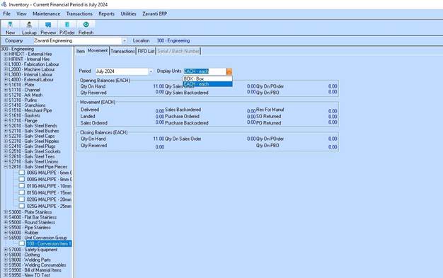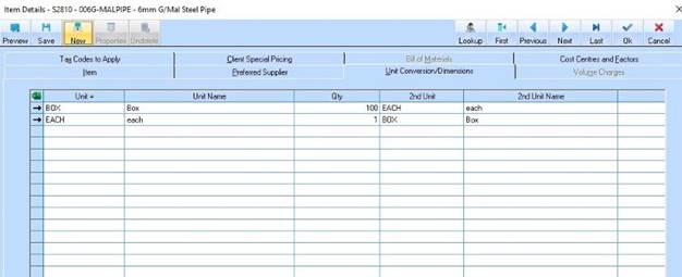 2. Both sides of the conversions need to be set up. In this sample there are 100 ‘Each’ in a ‘BOX’
