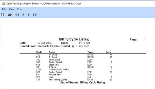 Navigate to the Billing Cycles dialogue box using the menu path from the previous exercises.