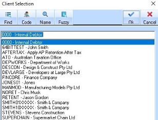 10. Select a Client and Press the OK button. The following window will be displayed: