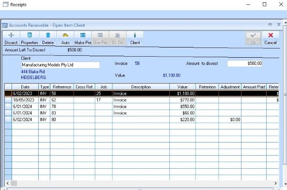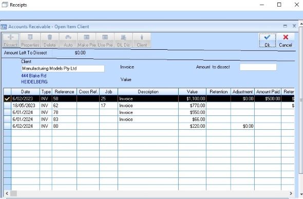 11. Select the Line Item and press the Dissect button. Then press the OK button. The updated Receipt details window will be displayed as follows: