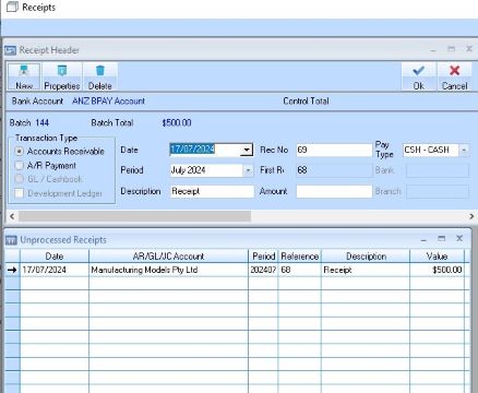 The Receipt function allows you to process account payments made by clients
