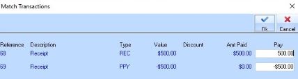 the Pay column for the first transaction. Press OK