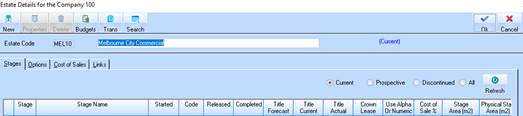 2. From the Estate window, click on NEW to create a new Stage for that Estate, enter the Stage details.