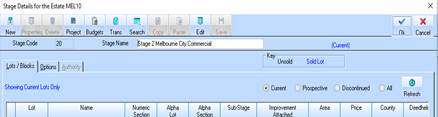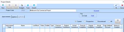 9. From the Project maintenance window, click on NEW to create the ‘Improvements’ for that Project. Link the LOT to the Improvement