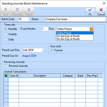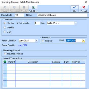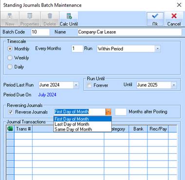 8. If the Standing Journal being created is for Accruals there is also an option available for Reversing Journals.
