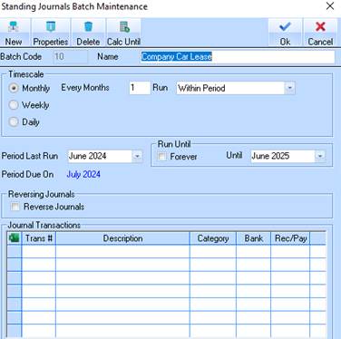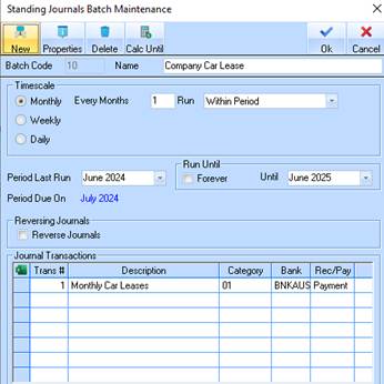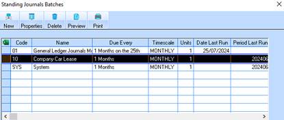 1. Select Maintenance/Standing Journals/Batches