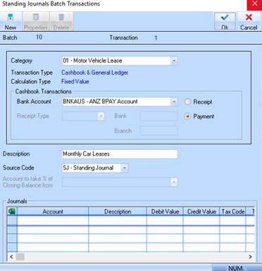 13. The Standing Journal Batch Transactions window is displayed.