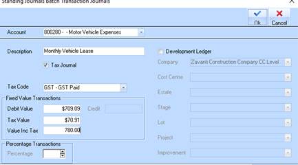 20. If this transaction needs to show GST tick the Tax Journal box and select a Tax code.