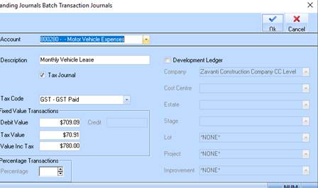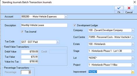 21. If this transaction (Cost) needs to be associated to the Development Ledger check the box and select the Estate/Stage/Project/Cost Centre combination