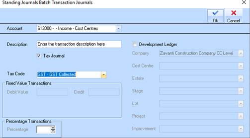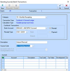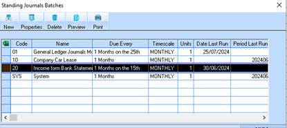 3. If necessary create a separate Standing Journal Batch