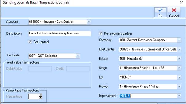 11. If this Revenue is related to a Development Project stick the Development Ledger box and select the Project details.