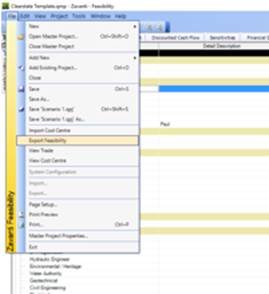 1. Open the required Feasibility and select ‘Export Feasibility’ option from the file menu