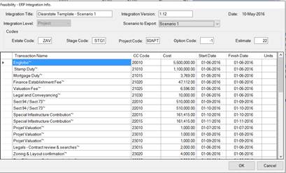 8. Enter the ‘Project Code’. (if Integration Level set to ‘Project’ above) This code corresponds to the Project code used when creating the new Development Project. . All ‘Improvement’ Stock maintained in the Feasibility will be created under this Project