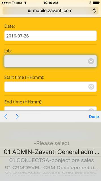 6. Step 1 is to select the relevant job, this is done by selecting the drop down button and scrolling through the list displayed, highlight the correct job and select “Done” to save this job.