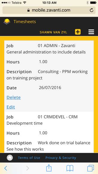 3. The user then receives details of existing timesheets within that date range and can review and edit the timesheets. The editing process is a repeat of the entry process which is described below.
