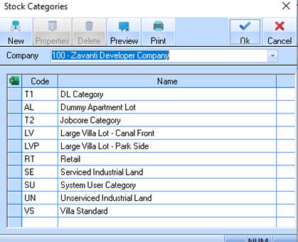 1. Select a menu path of Maintenance Ø Stock Ø Stock Category. The following window will be displayed: